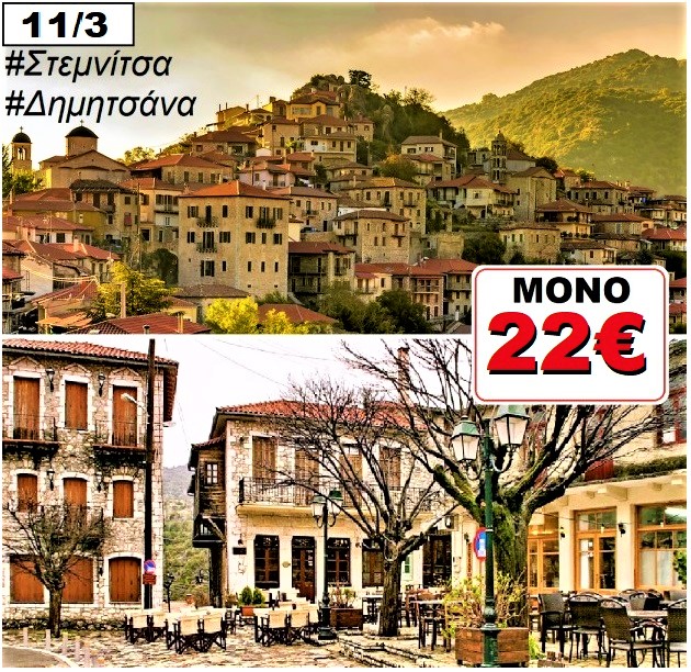 Tο Σάββατο 11/3 αναχωρούμε στις 8:00 ακριβώς από το μετρό του Ελαιώνα (Ιερά Οδό). Με ενδιάμεση σύντομη στάση για καφέ, ανηφορίζουμε για τα χωριά της Αρκαδίας! Πρώτη μας επίσκεψη στην υπέροχη ΣΤΕΜΝΙΤΣΑ! Επιβλητικά πυργόσπιτα με τοξωτά υπέρθυρα, πέτρινα καλντερίμια που ανηφορίζουν περνώντας κάτω από τις καμάρες των σπιτιών και χάνονται μέσα στις καρυδιές και τις κερασιές, κεφαλόβρυσα στη σκιά αιωνόβιων πλατάνων και μια ζωντανή πλατεία γεμάτη καφενεία και ταβέρνες συνθέτουν ένα από τα επίσης ομορφότερα χωριά της Αρκαδίας!