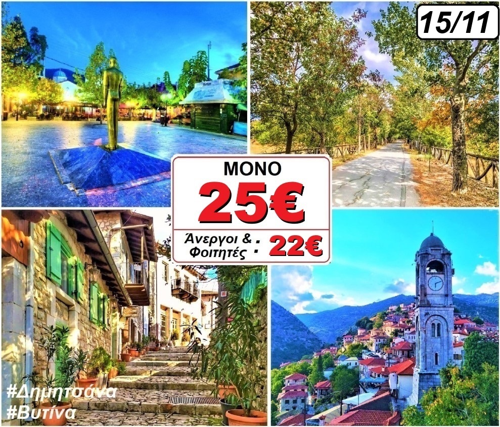Ολοήμερη εκδρομή Ορεινή Αρκαδία! ΔΗΜΗΤΣΑΝΑ – ΒΥΤΙΝΑ! Σάββατο 15/11/25